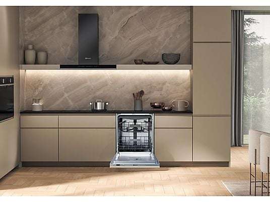 Deze volledig geïntegreerde inbouwvaatwasser combineert ActiveDry automatische deuropening, sensorprogramma’s en een flexibel interieur met besteklade én bestekmand. Dankzij de stille werking en slimme functies is dit toestel ideaal voor wie comfort en efficiëntie wil in een strak geïntegreerde keuken.