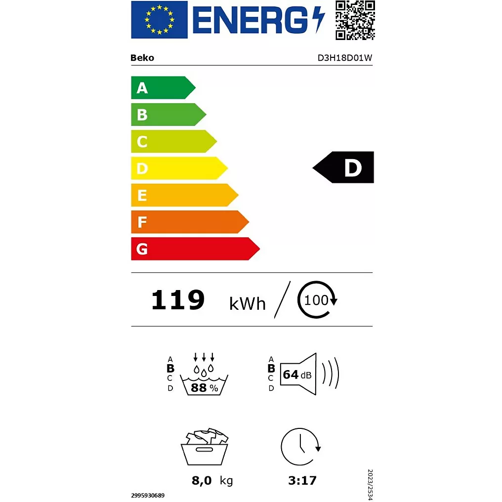 Energieverbruik en -besparing BEKO D3H18D01W