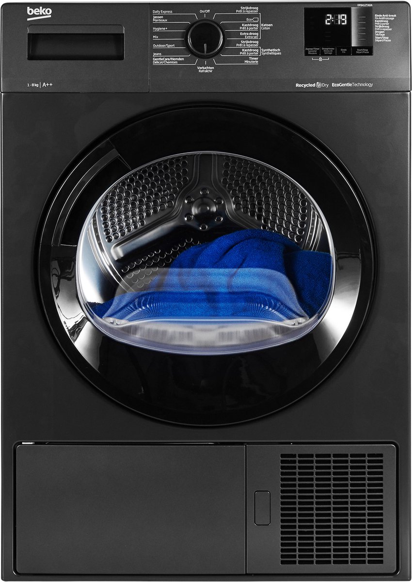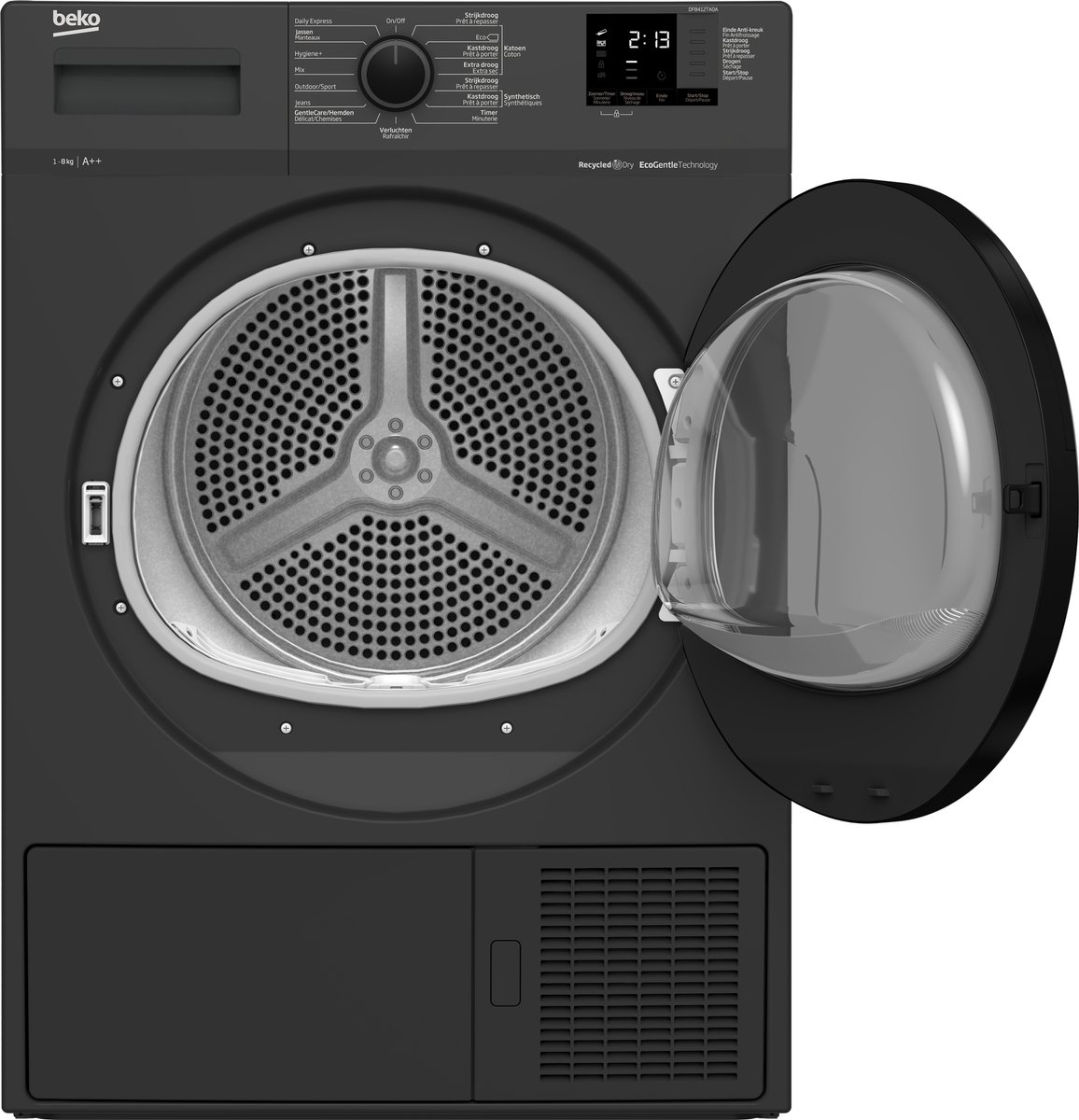 Het drogen van je kleding kan je kleding beschadigen. Gelukkig is dit niet het geval bij de Beko DF8412TA0A Deze beschikt namelijk over het het AquaWave®-systeem. De deur is van gebogen glas en de de speciaal ontworpen peddels die het wasgoed in de trommel zorgen ervoor dat de trommel een golvende beweging maakt. Hierdoor wordt je kleding beter en voorzichtiger behandeld. Naast dat hij zuiniger met je kleding omgaat, droogt je kleding dankzij dit systeem ook beter.