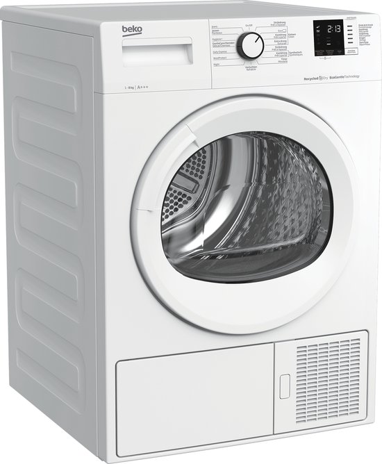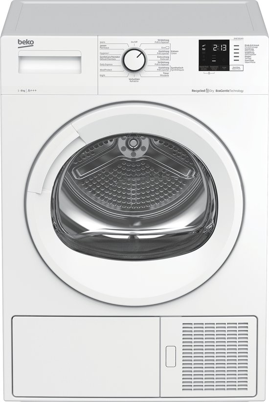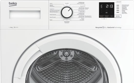 De Beko DH8735GA01 warmtepomp droogkast uit de Performance Line komt met een sensor display (touch) en geeft je de mogelijkheid om een startuitstel to 24 uur in te stellen. Maximale drooglading is 8kg en met de energieklasse van C behoort deze warmtepomp droogkast tot een energiezuinige variant. Een warmtepomp droogkast droogt op lage temperaturen. Zo blijft je kwetsbare kleding beter beschermd tegen krimpen. Bovendien is een warmtepomp droogkast zeer energiezuinig. Wanneer de droogkast helemaal vol zit, duurt het katoenprogramma gemiddeld 219 minuten. Vergeleken met een condensatie droogkast is dat iets langer, maar door de lage temperatuur wel een stuk zuiniger en beter voor je kleding.