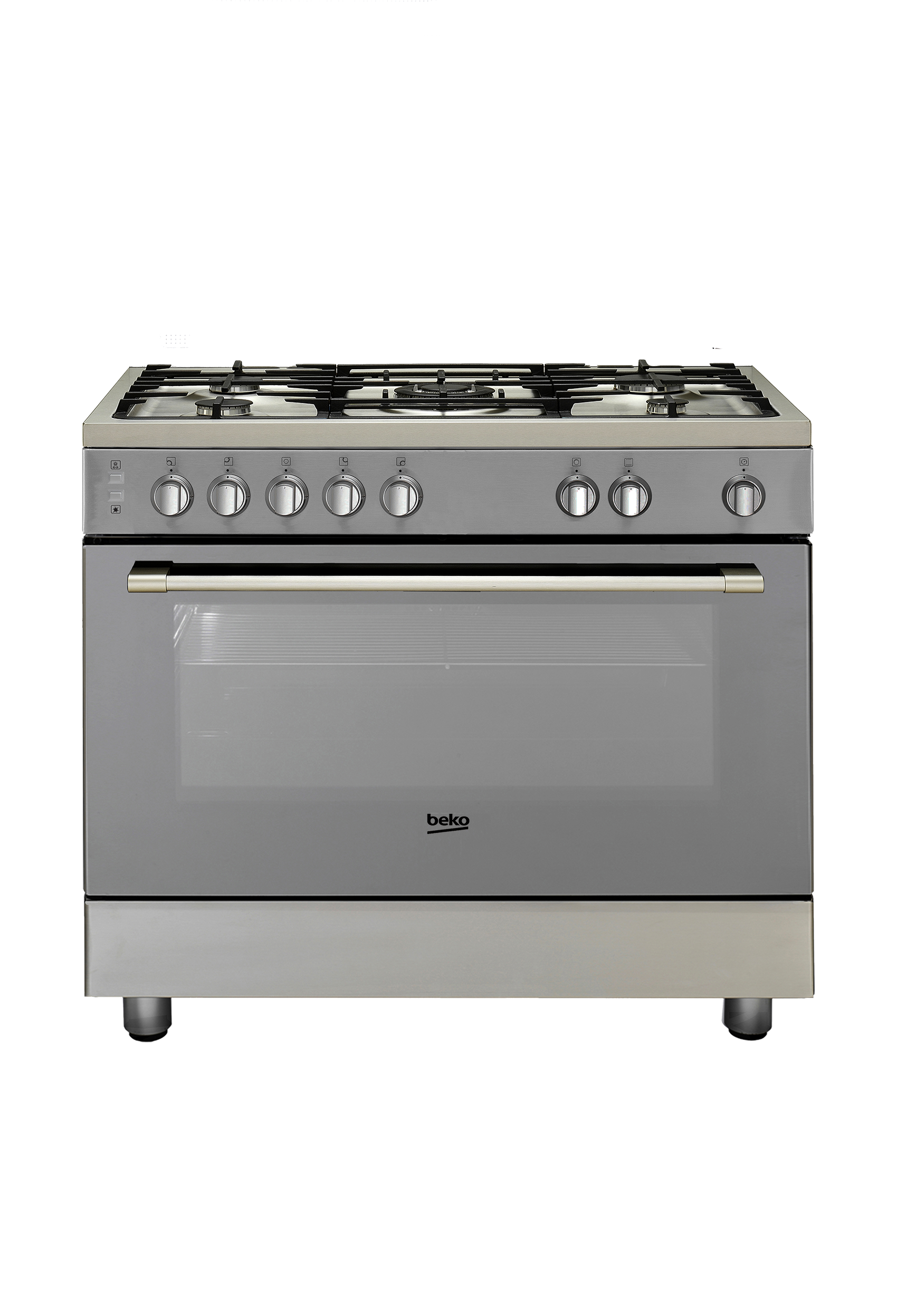 Kook als een professional met dit ruime inox gasfornuis. Voorzien van 5 gasbranders inclusief wok, een energiezuinige gasoven en gietijzeren pansteunen voor maximale stabiliteit.