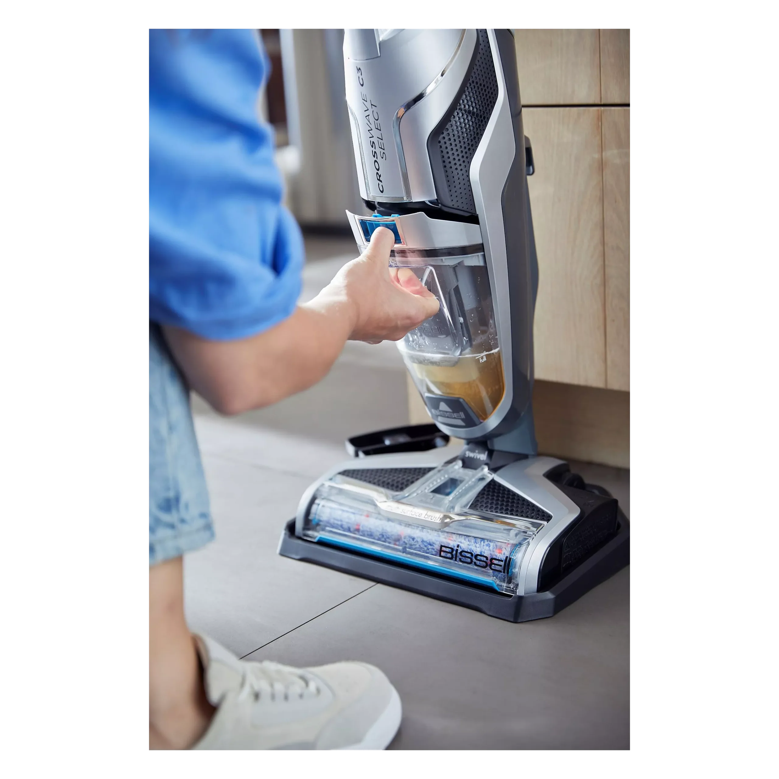 De BISSELL CrossWave C3 Select is een praktische vloerreiniger die tegelijk kan stofzuigen en dweilen. Dankzij het dubbele waterreservoir wordt schoon water gescheiden van vuil water, wat zorgt voor een hygiënisch en efficiënt schoonmaakresultaat.