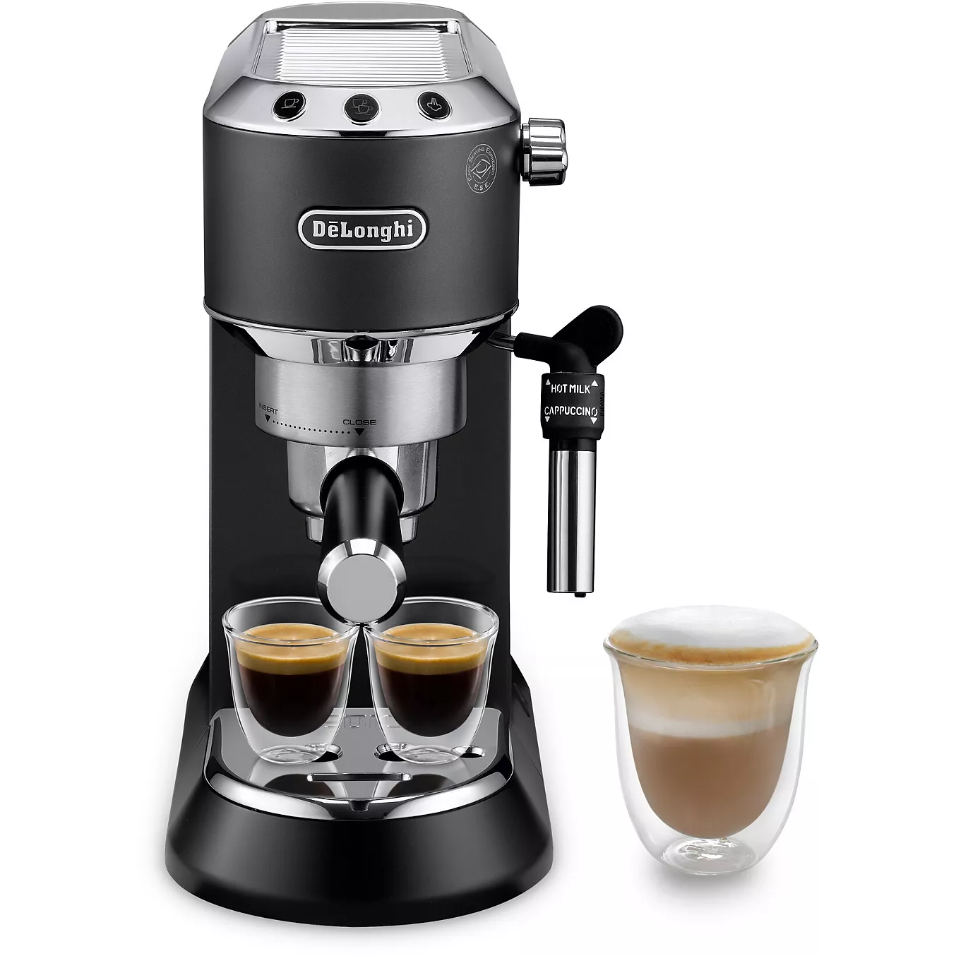 Compacte en stijlvolle espressomachine met professionele 15 bar druk. Geschikt voor gemalen koffie én ESE-pads. Ideaal voor het bereiden van authentieke espresso en cappuccino zoals een echte barista.