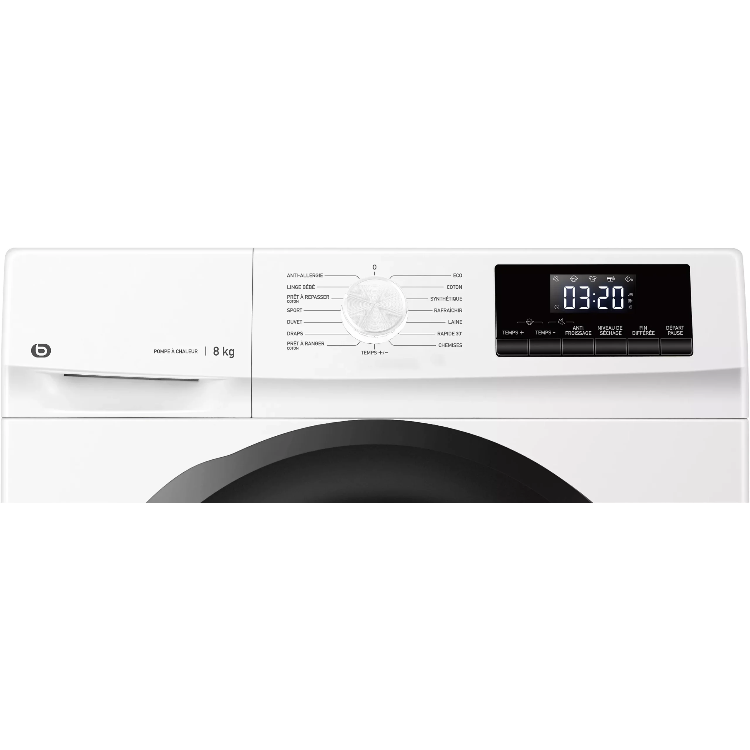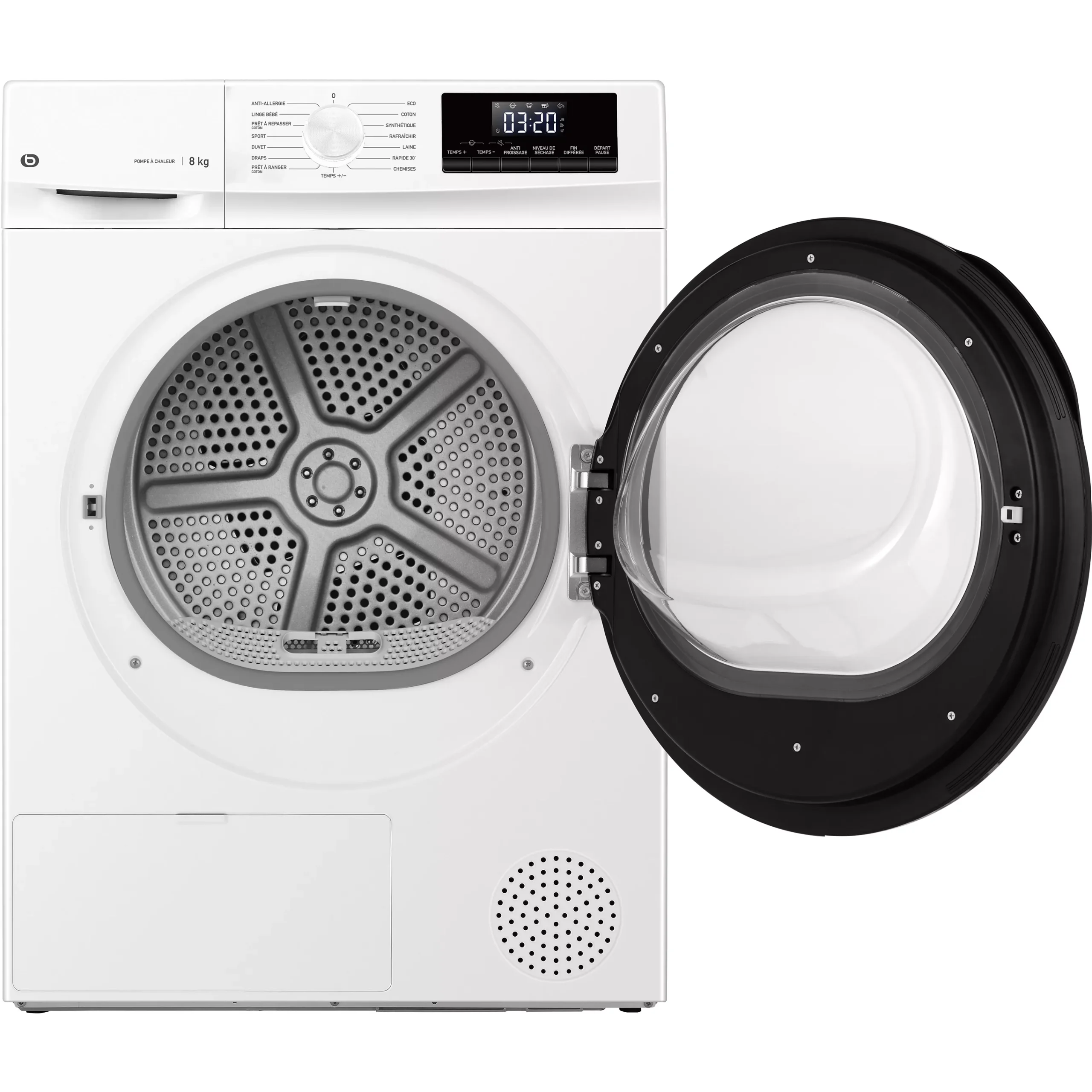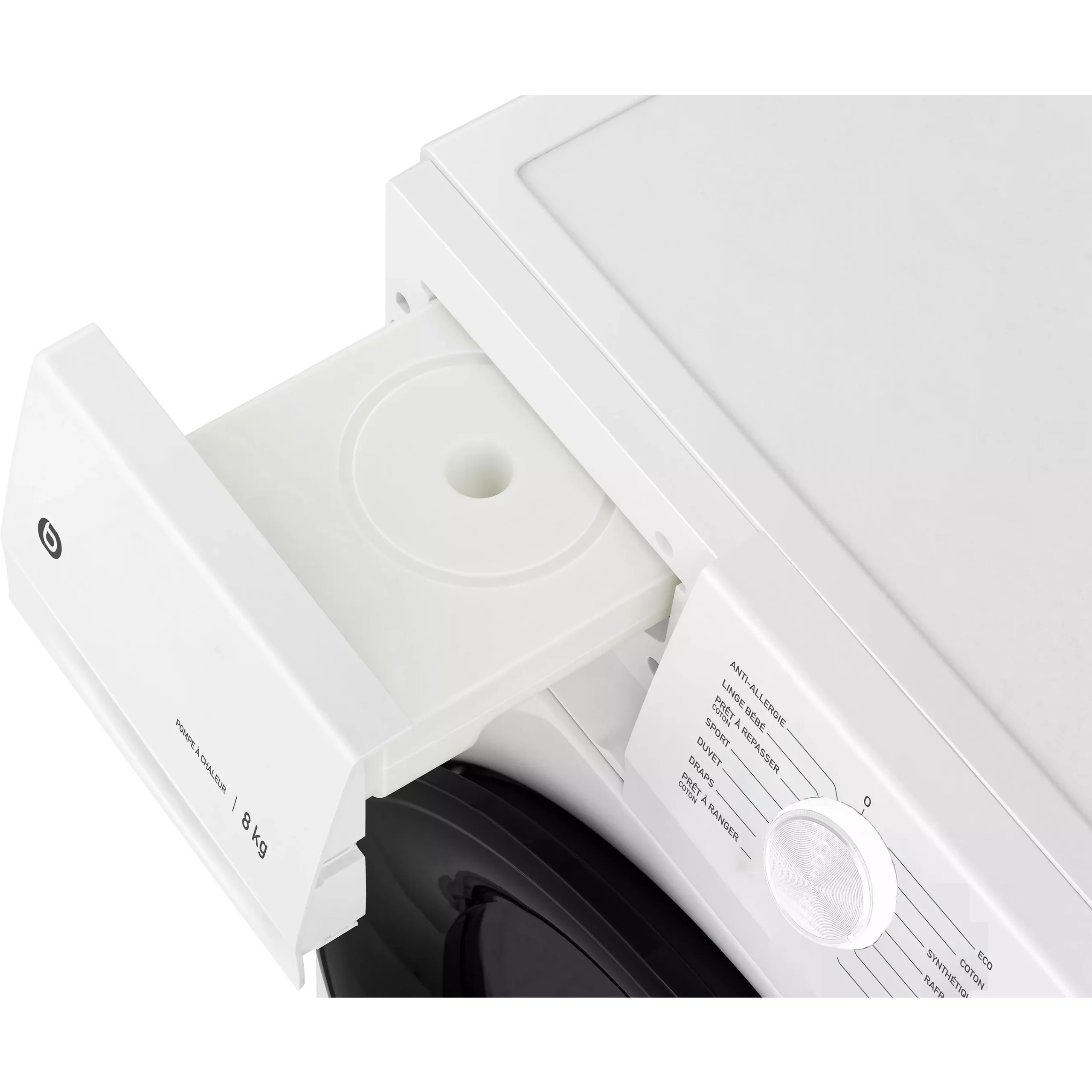 Deze warmtepompdroger van 8 kg is een energiezuinige en stille oplossing voor dagelijks gebruik. Dankzij de lage droogtemperatuur blijft je wasgoed langer mooi, terwijl de vochtigheidssensor automatisch stopt zodra de was droog is. Ideaal voor gezinnen die comfort, eenvoud en een laag verbruik belangrijk vinden.