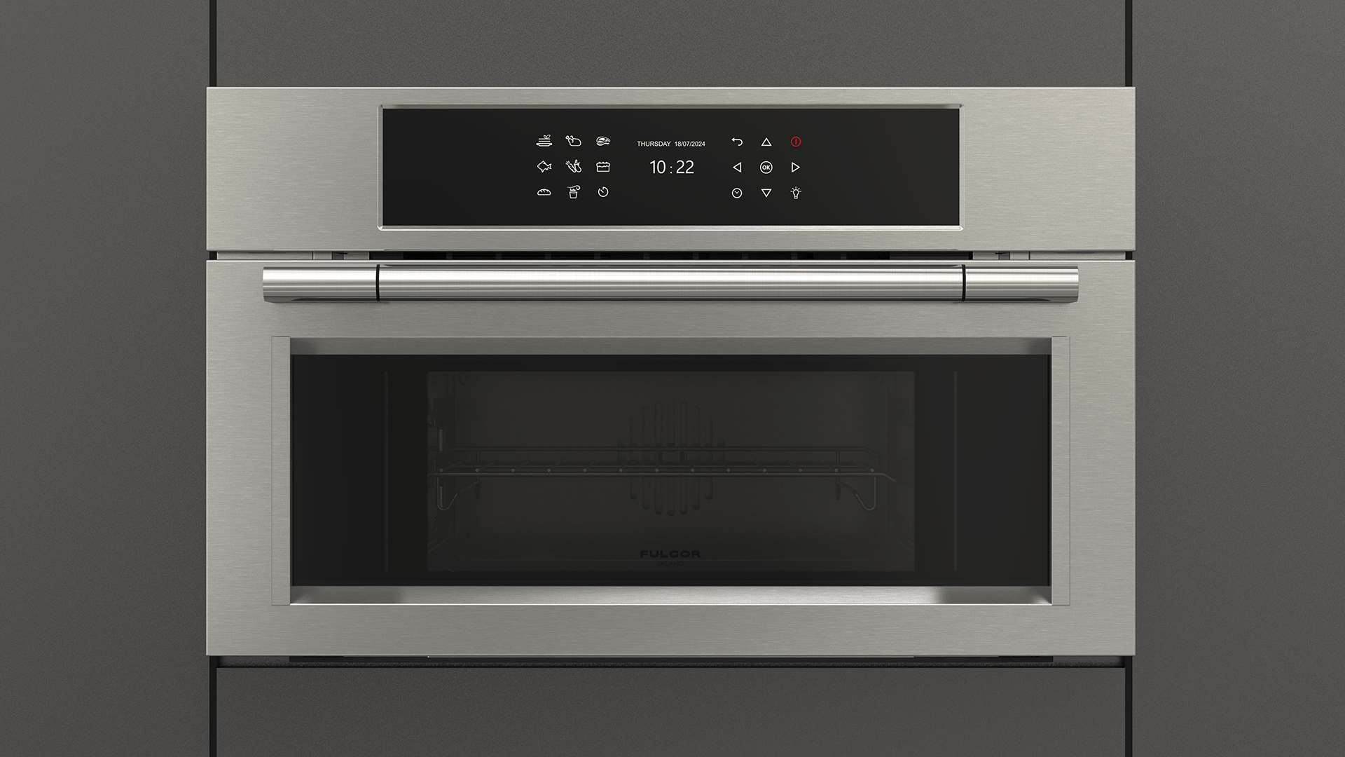 Deze Fulgor Milano Professional combi stoomoven van 30 inch combineert traditionele ovenfuncties met geavanceerde stoomtechnologie. Dankzij de combinatie van stoom, convectie en grill kan je gerechten bereiden met maximale smaak, perfecte textuur en optimale voedingswaarde.