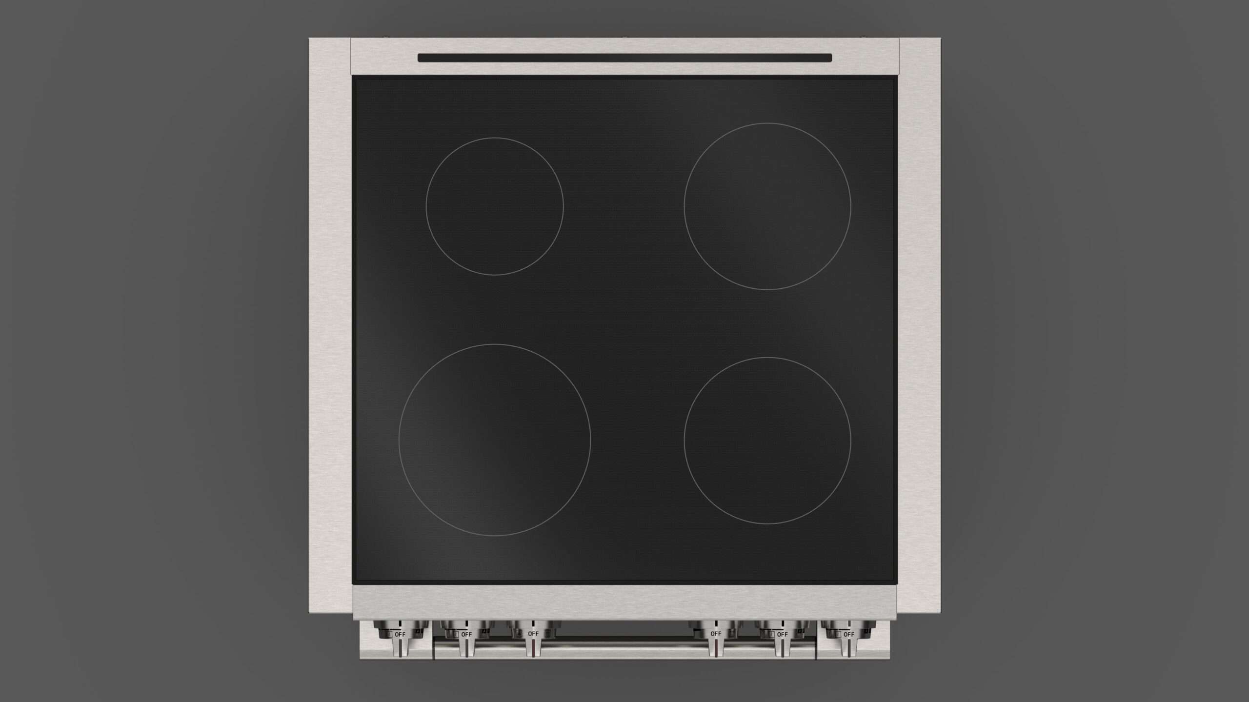 De SOFIA INDUCTIE 30” beschikt over een exclusieve premium inductiekookplaat met vier kookzones, bediend via intuïtieve draaiknoppen. Het robuuste zwarte glaskeramische oppervlak heeft een speciale krasbestendige structuur en een geïntegreerd bedieningsdisplay.