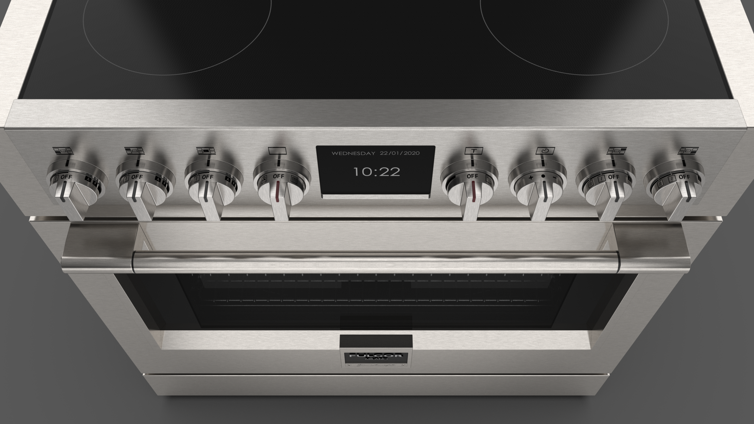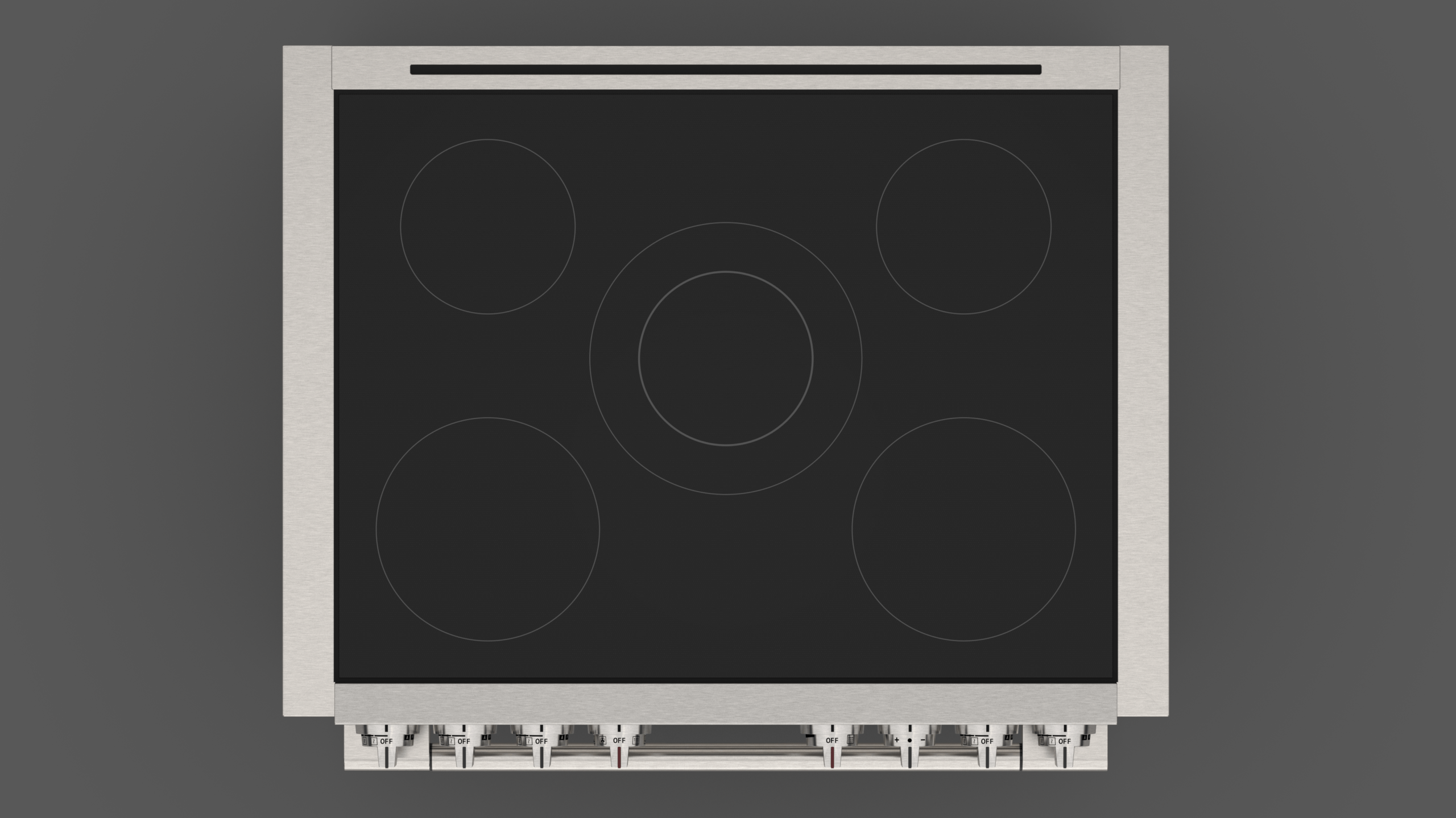 De SOFIA INDUCTIE 36” wordt gekenmerkt door een exclusieve vijf-zone premium inductiekookplaat met draaiknopbediening. Het zwarte glaskeramische oppervlak heeft een krasbestendige structuur en een geïntegreerd bedieningsdisplay.