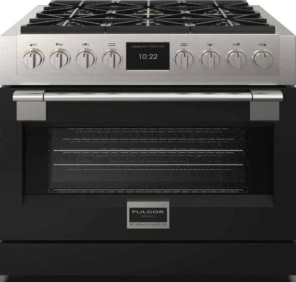 De 36” pyrolytische multifunctionele oven is momenteel de grootste oven die door Fulgor Milano wordt geproduceerd.