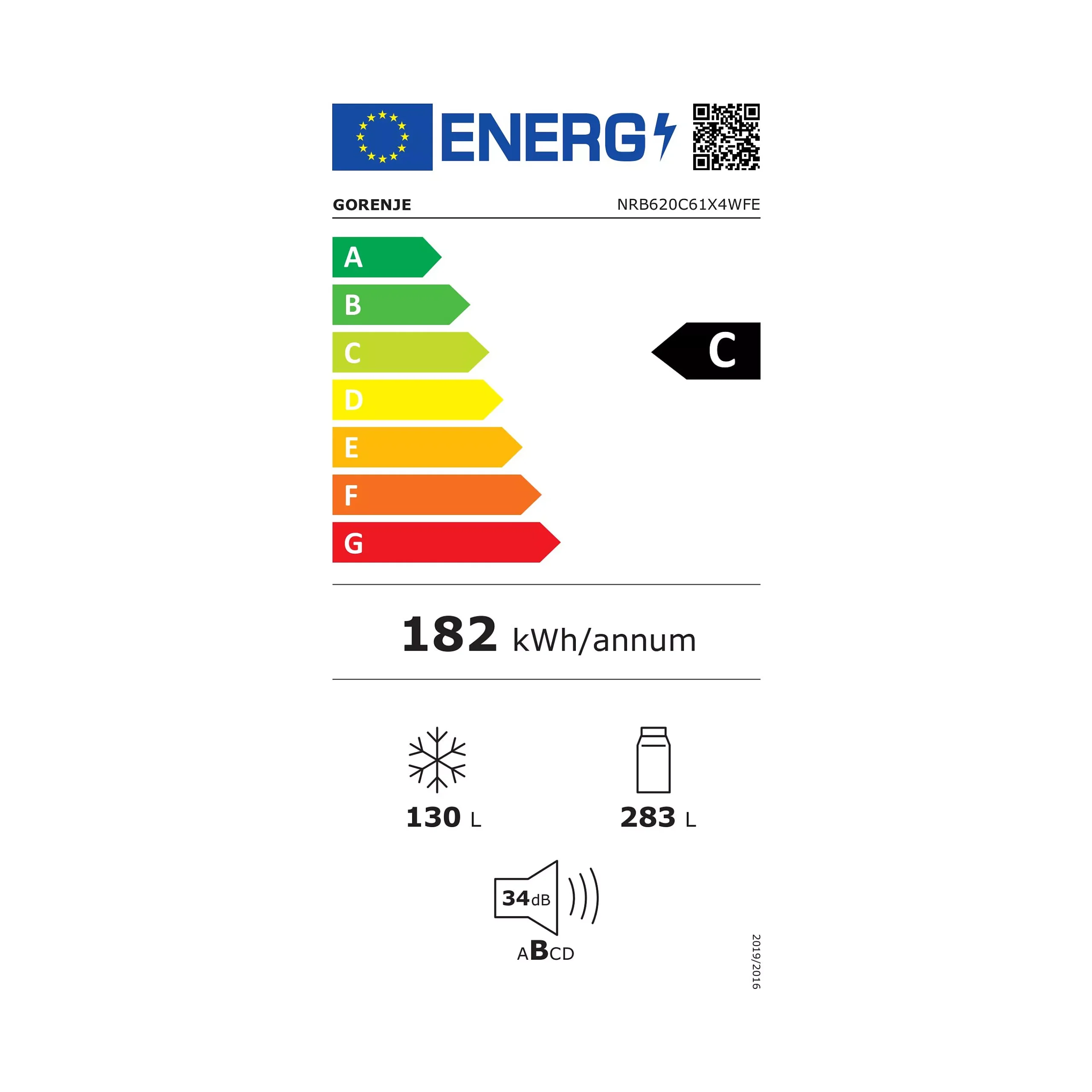 Energielabel C – verbruik 182 kWh/jaar.