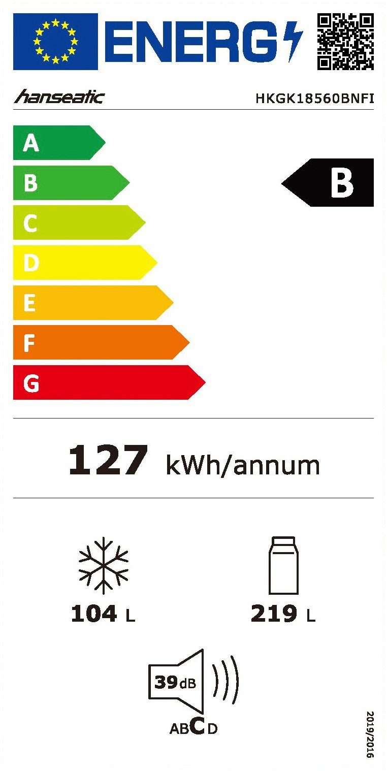 De Hanseatic HKGK18560BNFI is een stijlvolle vrijstaande koel-vriescombinatie in roestvrijstalen uitvoering. Dankzij energieklasse B en een verbruik van slechts 127 kWh per jaar combineert dit toestel uitstekende energieprestaties met moderne technologie zoals NoFrost, een extern touchdisplay en een supervriesfunctie. Ideaal voor wie comfort en efficiëntie zoekt in één toestel.