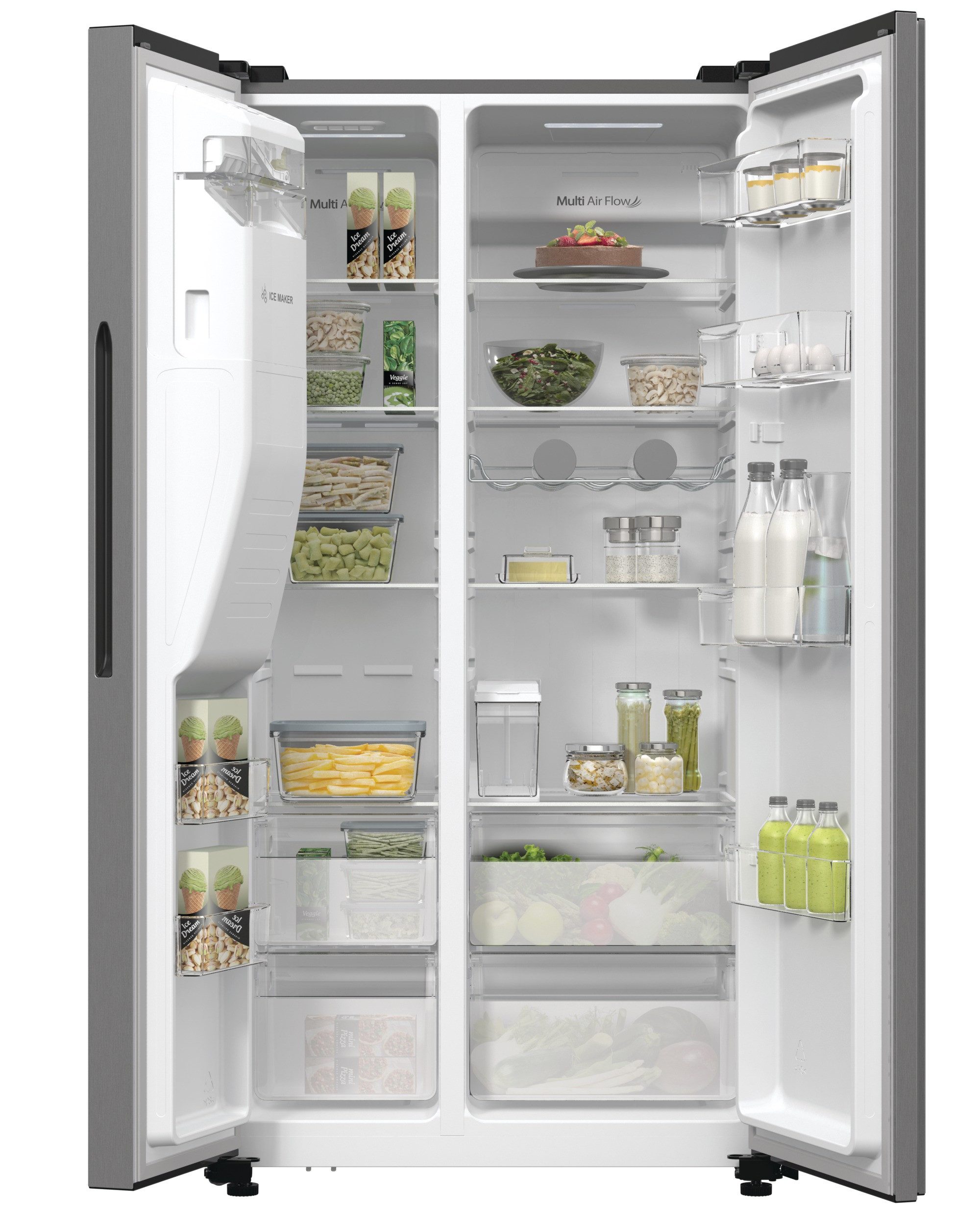 De No Frost-functie voorkomt de vorming van ijskristallen, waardoor het apparaat nooit meer ontdooid hoeft te worden. Groenten en fruit blijven langer vers en knapperig dankzij de CrispZone-lade. Het apparaat is tevens voorzien van een ijsblokjesmachine en een waterdispenser.