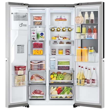 Nooit meer ruimtegebrek met deze b-keus LG Amerikaanse koelkast met 416 liter netto koelinhoud en 219 liter netto vriesinhoud. Door zijn ruime afmetingen (h:179 cm * b:91.3 cm * d:73.5 cm) heeft u altijd plek voor dat ene extra etenswaar. Deze side by side koelkast heeft met zijn eenvoudige maar verfijnde uitstraling absoluut zijn plek verdiend in de keuken. De weg naar de keuken is, dankzij de verschijning van deze LG Amerikaanse koelkast, makkelijker te vinden dan ooit!