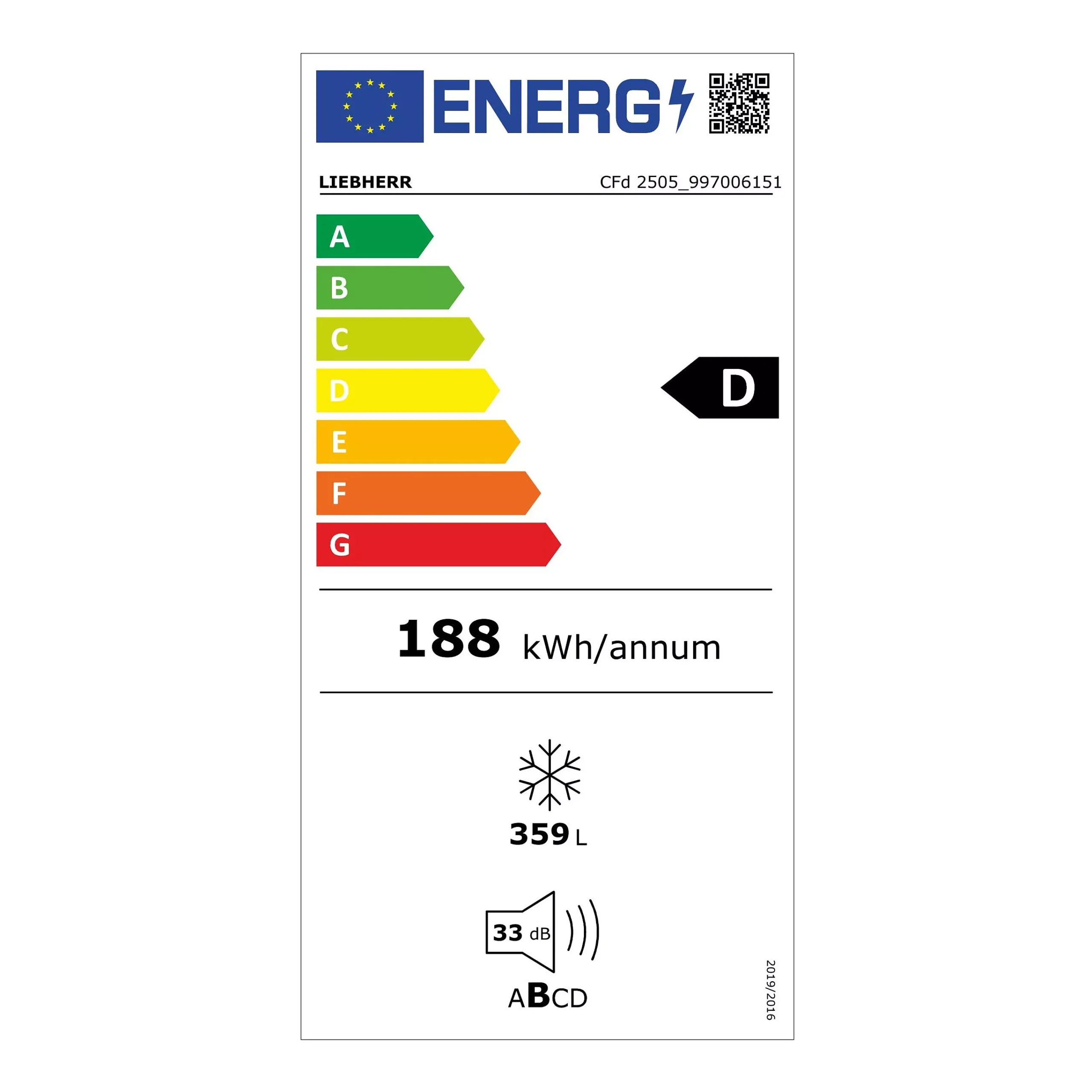 Jaarlijks energieverbruik: 188 kWh