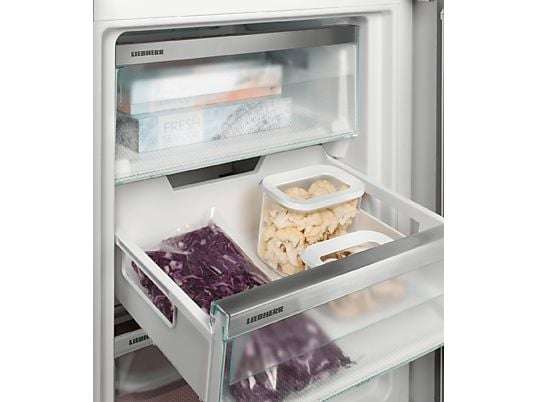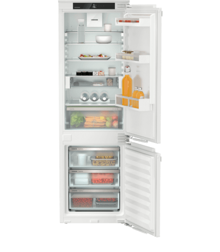 Deze Liebherr inbouw koel-vriescombinatie met diepvriezer onderaan combineert een stille werking van slechts 33 dB met betrouwbare koelprestaties. Dankzij functies zoals SuperCool, MagicEye-bediening en VarioSpace biedt dit toestel comfort, flexibiliteit en energiezuinig gebruik in elke moderne keuken.