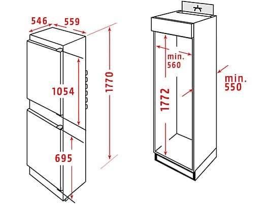 Inbouw koel-vriescombinatie (2 deuren, diepvriezer onderaan)