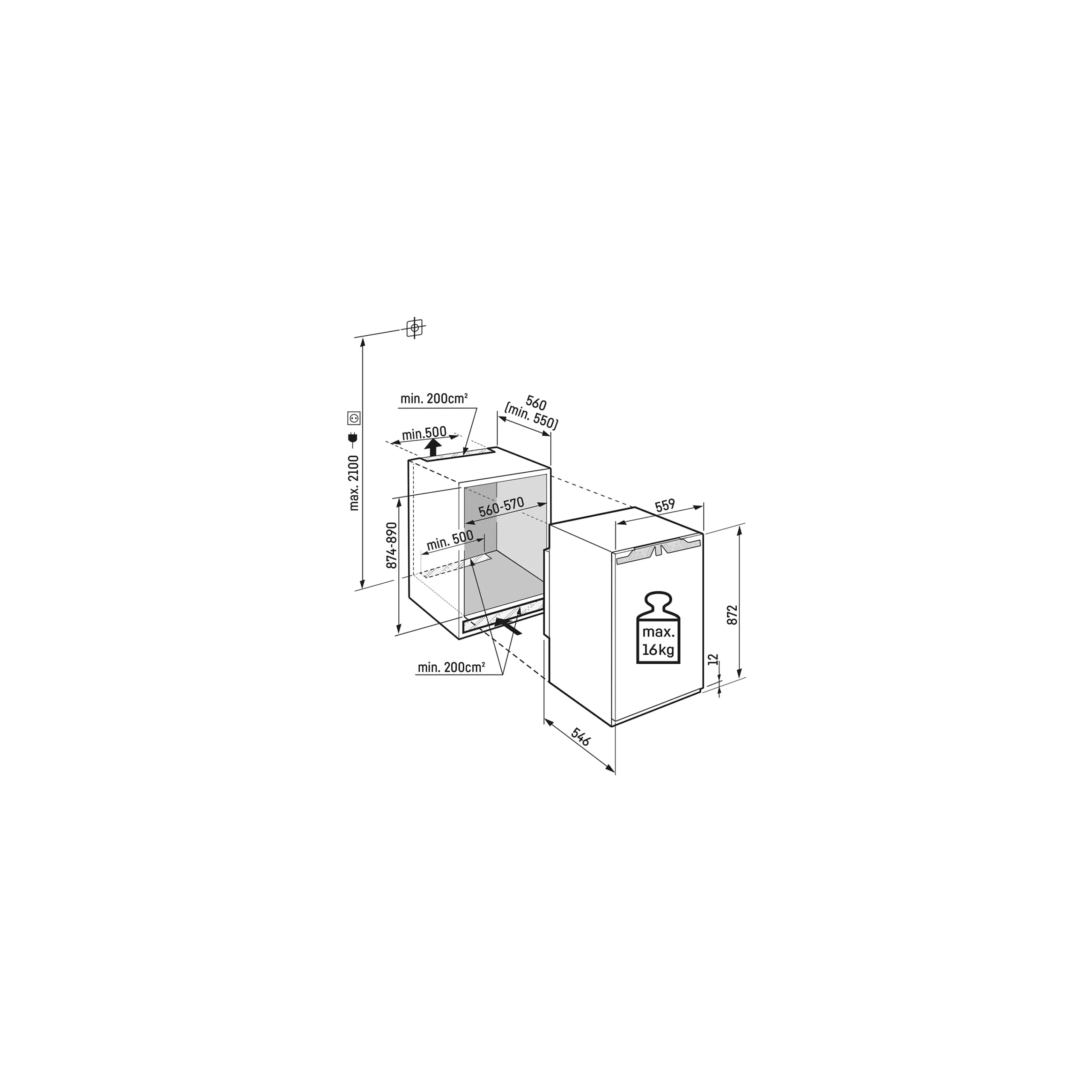 - Diepte: 54,6 cm