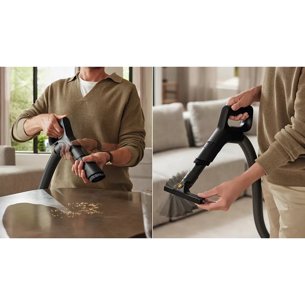 - Borstels en speciale accessoires: XXL flexibele kierenzuigmond (56 cm) voor het stofzuigen tussen meubels en moeilijk bereikbare plekken
