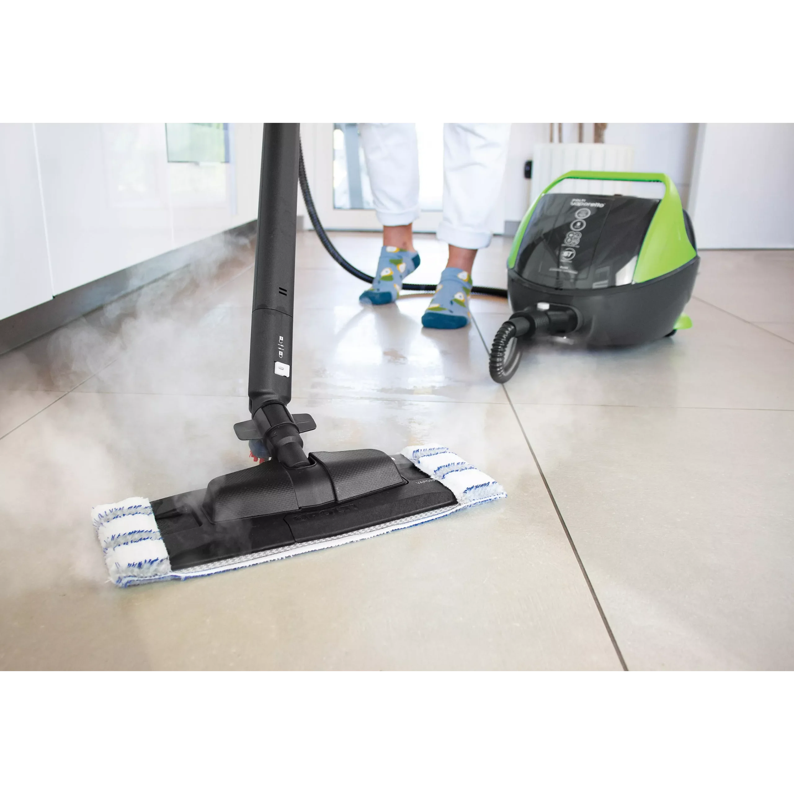 De Polti Vaporetto Pro 95 Turbo Flexi is een veelzijdige stoomreiniger met boiler die diepe reiniging mogelijk maakt zonder gebruik van chemische producten. Dankzij de krachtige stoomdruk verwijdert het toestel hardnekkig vuil, vet en bacteriën van verschillende oppervlakken zoals vloeren, tegels, voegen en textiel.