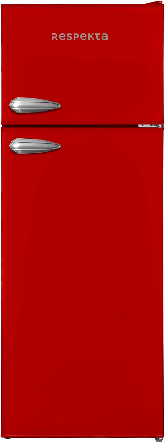 - Uitrusting: de levering van de retro koelkast bevat 4 glazen legplanken, 3 deurplanken, groentelade, vriesvak, eierplank en ijsblokjesmaker – voor meer orde in de koelkast