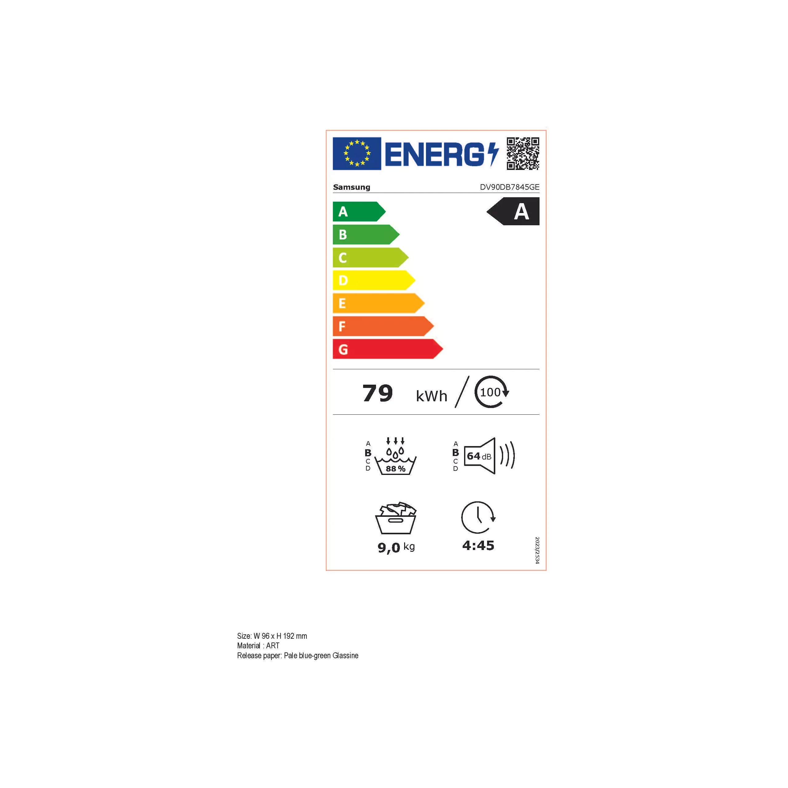 Jaarlijks energieverbruik: 79 kWh