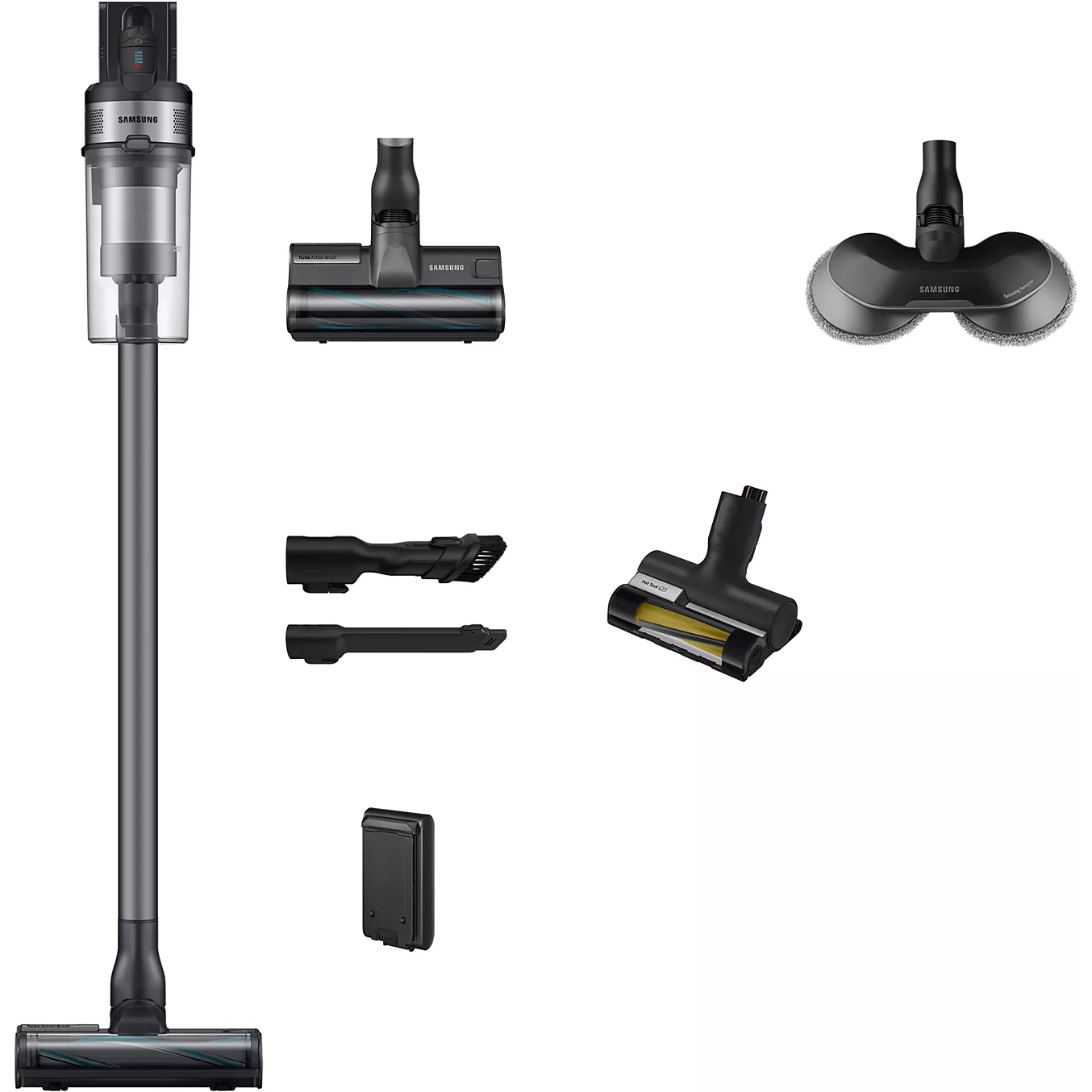 Deze krachtige draadloze steelstofzuiger van Samsung combineert stofzuigen en dweilen in één toestel. Dankzij de 200 AirWatt zuigkracht, de dubbele gemotoriseerde dweil en de Turbo Action borstel is dit toestel ideaal voor zowel harde vloeren als tapijten. Perfect voor huishoudens met huisdieren.
