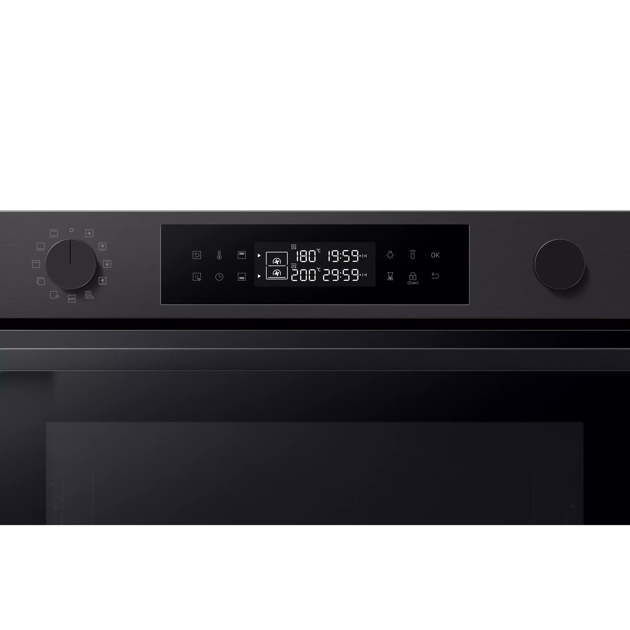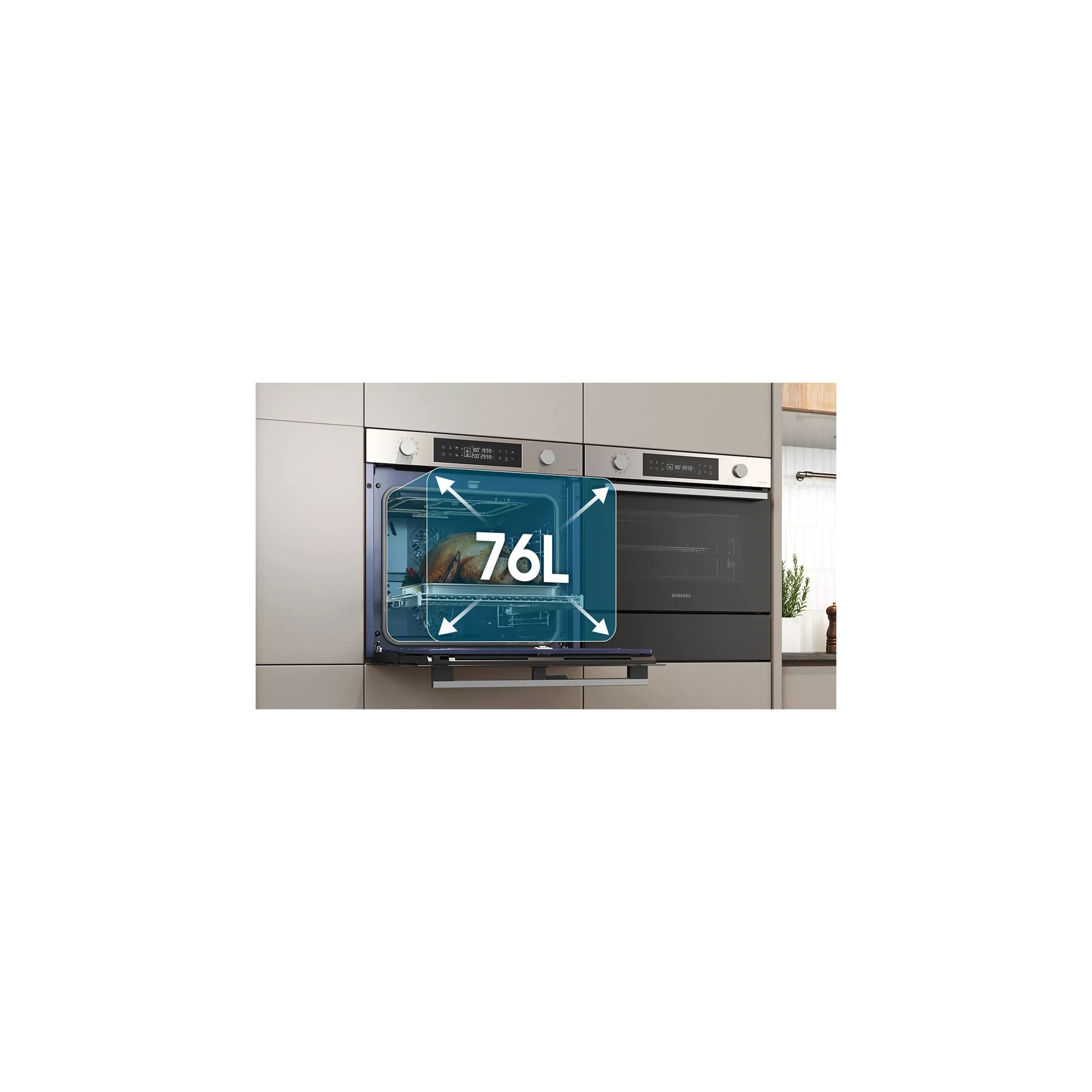 Dubbele ovenruimte met scheidingsplaat. Dankzij de divider kan de oven in 2 aparte zones worden opgesplitst, wat 3 gebruiksmogelijkheden biedt: