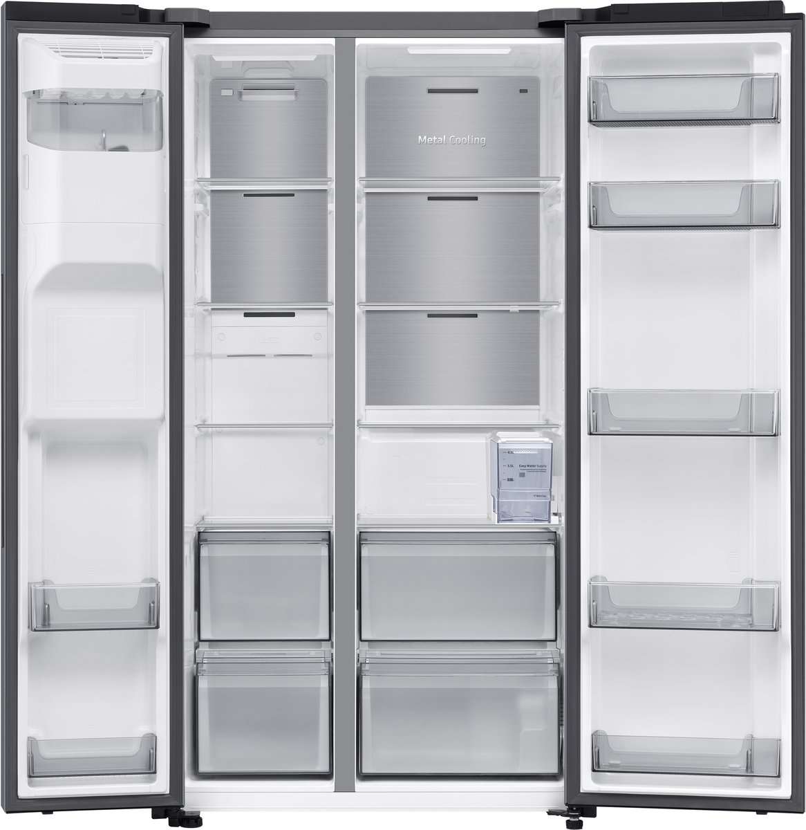 De Samsung RS70F65KET uit de 7 serie is een moderne Amerikaanse koelkast die uitblinkt in slimme technologie, stijlvolle afwerking en royale inhoud. Dankzij SmartThings heb je altijd en overal controle over je koelkast. Met Twin Cooling Plus™ blijven je producten langer vers, terwijl Metal Cooling helpt om de temperatuur stabiel te houden – ook als je vaak de deur opent. De flexibele indeling en energiebeheer maken dit een slimme keuze voor elk huishouden.