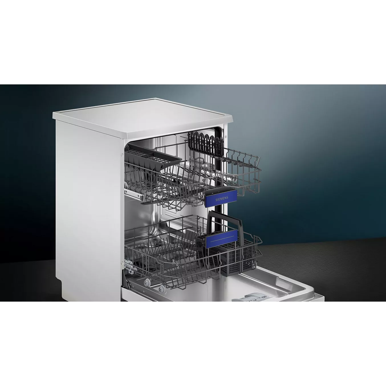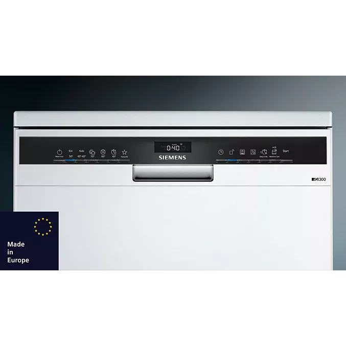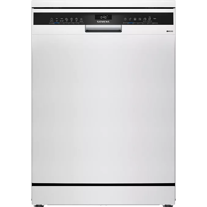 De Siemens SN23EW03KE is een vrijstaande vaatwasser met plaats voor 13 couverts, een stille werking van slechts 42 dB en een zuinige energieklasse B. Dankzij functies zoals automatische deuropening, warmtewisselaar-droogsysteem, uitgestelde start, Home Connect en AquaStop combineert dit toestel gebruiksgemak, zuinigheid en veiligheid in één modern toestel.