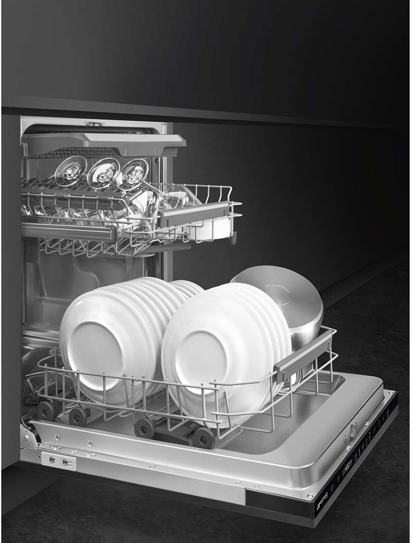 Is een smalle volledig ingebouwde vaatwasser van 45 cm, ideaal voor kleinere keukens of appartementen. Met plaats voor 10 couverts, een praktische besteklade en automatische deuropening combineert dit toestel efficiënt wassen met comfortabel drogen. Dankzij het stille geluidsniveau en de betrouwbare SMEG-kwaliteit is dit een uitstekende keuze voor dagelijks gebruik.